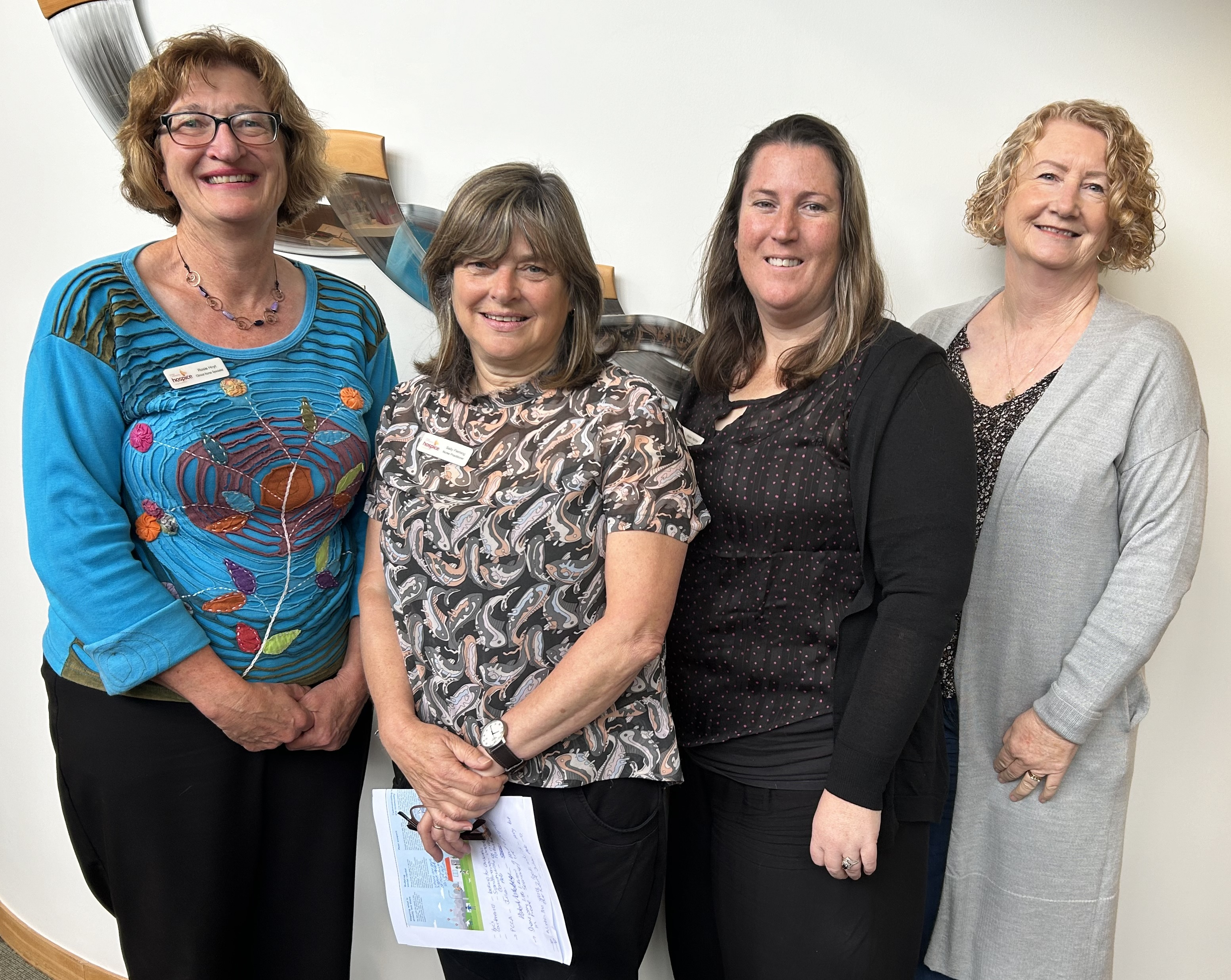 The RCT consists of (left to right) Rosie Hoyt, Clinical Nurse Specialist (CNS) North and East Otago; Sally Fleming, Nurse Practitioner and Team Leader; Helen Harrex, CNS Central and South Otago and Elaine Horn, CNS Dunedin.