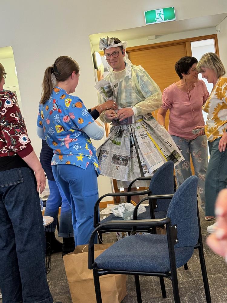 In anticipation of Kaitlin's wedding the North Road team threw her a bridal shower. There was food and presents and a 'dress someone as a bride' party game.