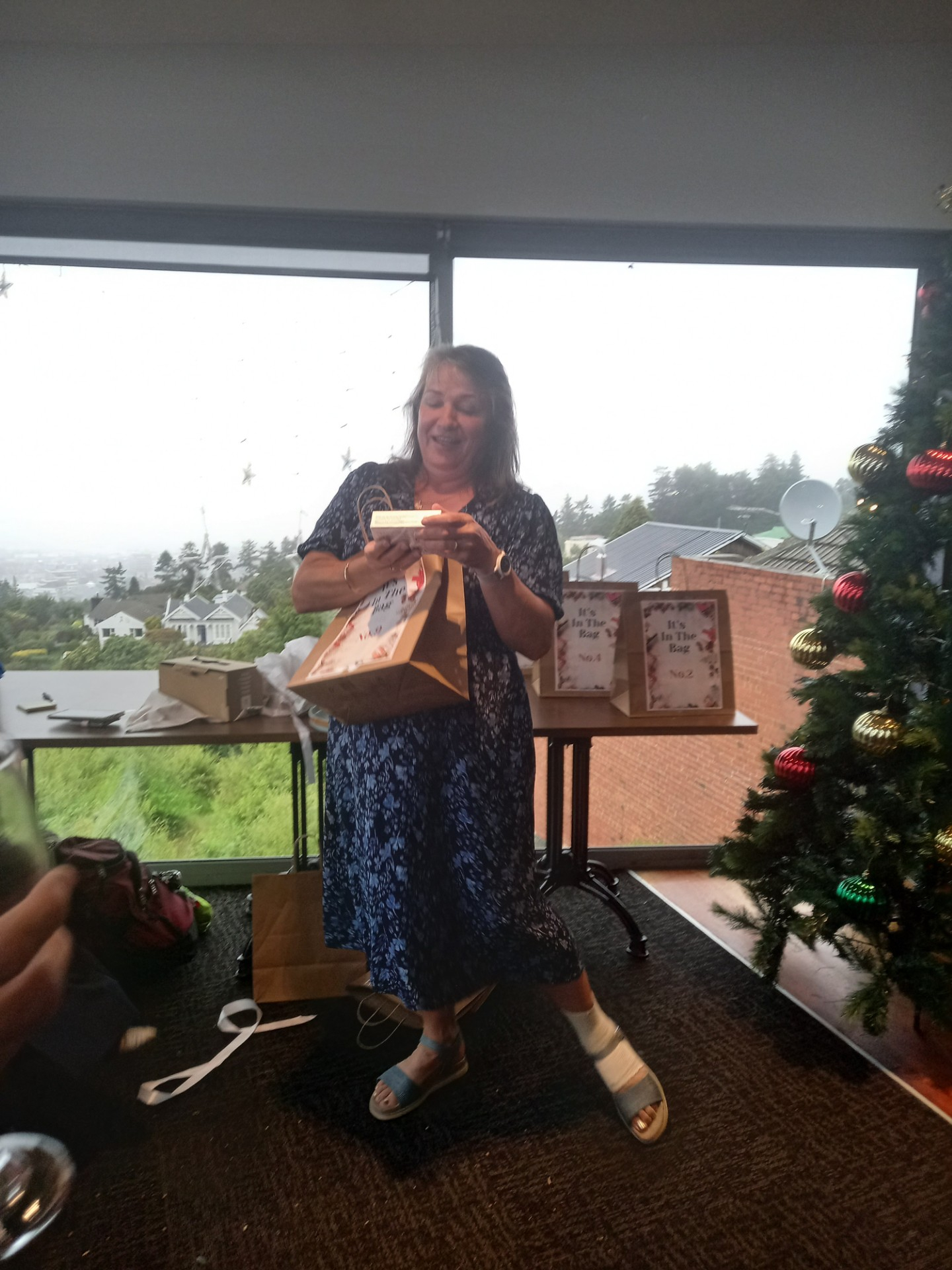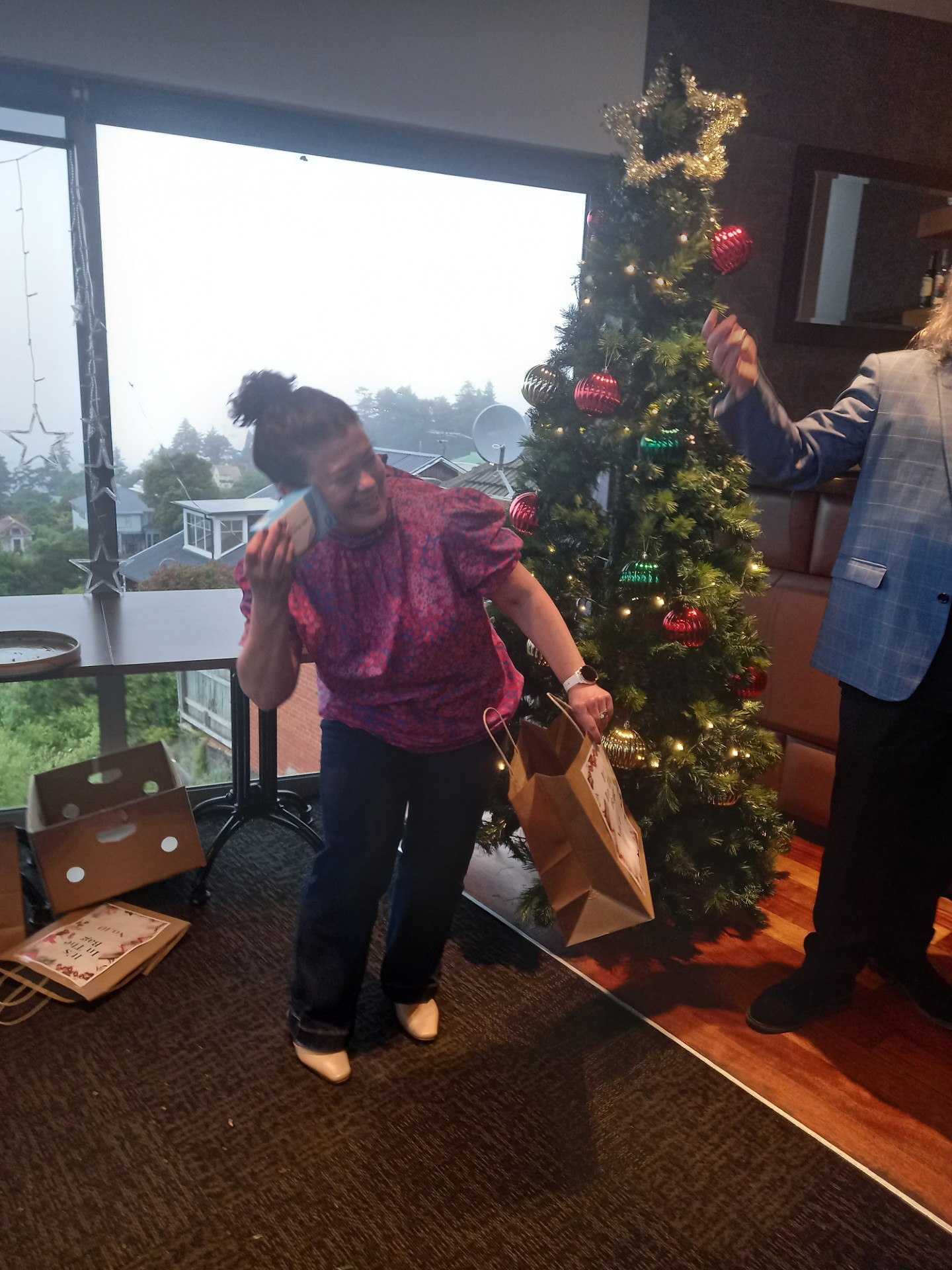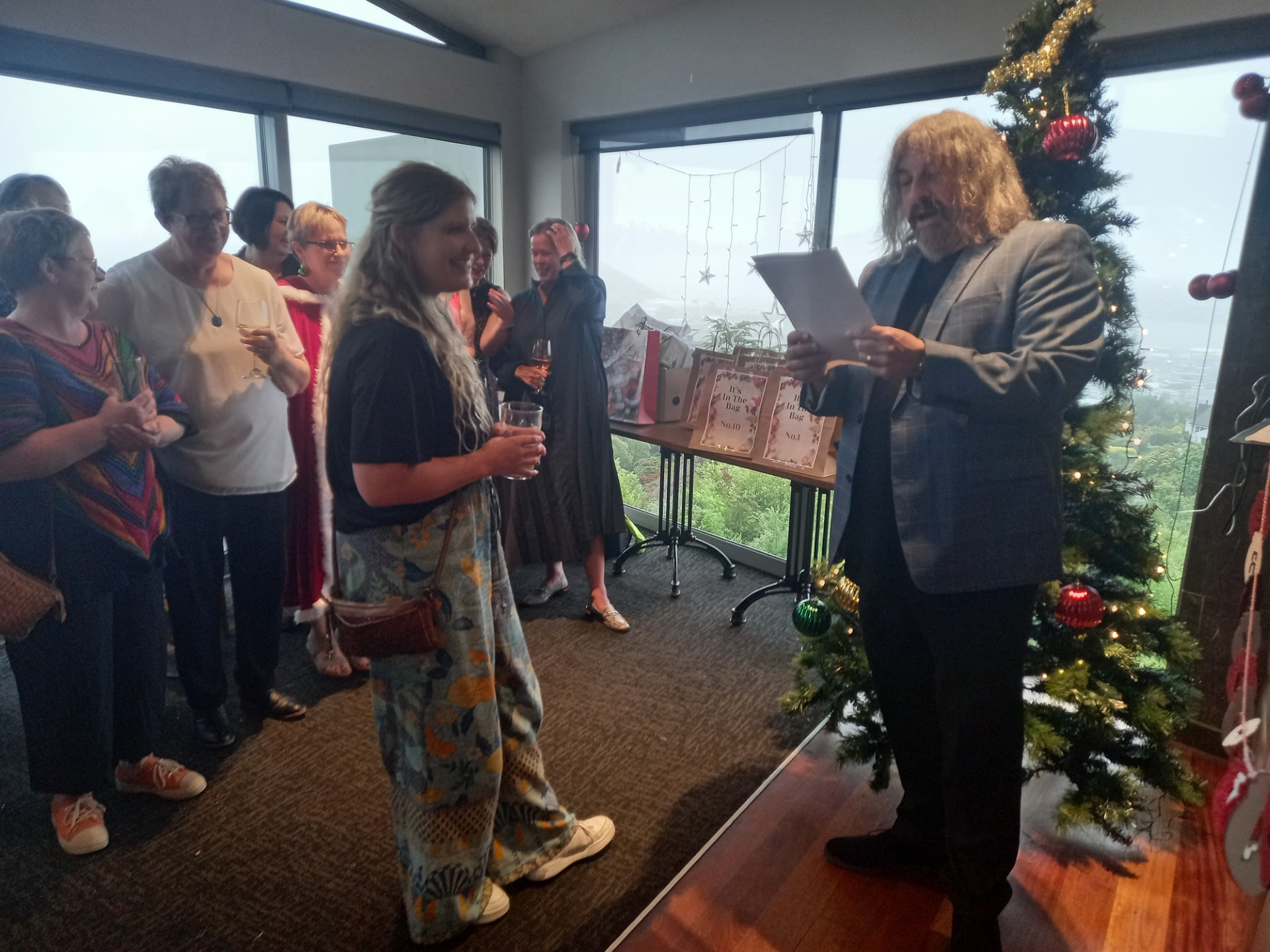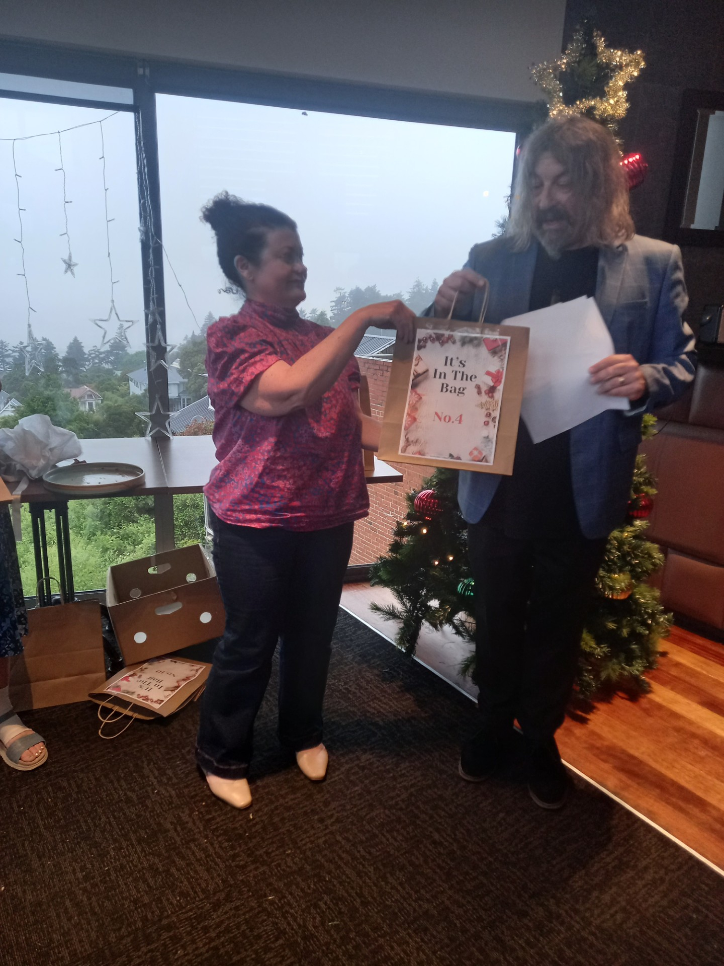 As well as yummy nibbles, drinks and a secret Santa draw, professional MC and entertainer, Jonathan Usher, dropped in to run an "It's in The bag" segment. There were five good prizes that included 'a day off work on your birthday' won by Kaitlyn and Marie - NICE! - and five booby prizes that included a 'Covid Test.' that Christina won - hopefully she doesn't need that prize this holiday season!