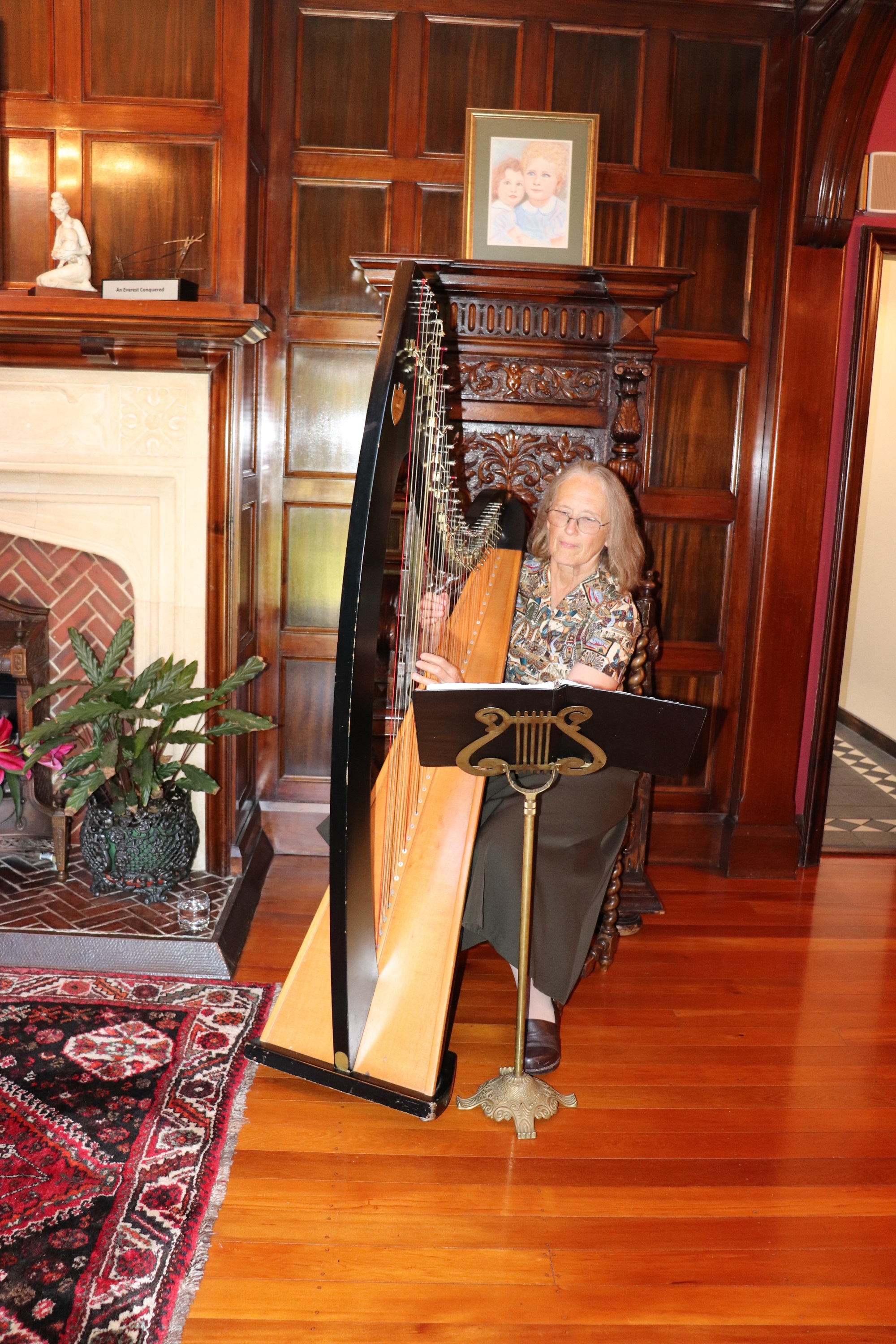 Victoria Muir from Sequel Events created the event from scratch. She, Barbara and fashion historian Dr Jane Malthus curated the fashion line up; the champagne was supplied by Wine Freedom, and sponsored by Deloitte Dunedin's Kyle Cameron; the coupe glasses were supplied by Oamaru Hospice Shop Manager Jenifer Callanan; and a glorious selection of cakes were donated by Heritage Cafe, The Tart Tin, Rosalind Alison and Amanda Burke. Hospice volunteer Marsa Dodson played her harp, and Lyn and Malcolm Farry supplied the backdrop of their beautiful Forbury Rd home.