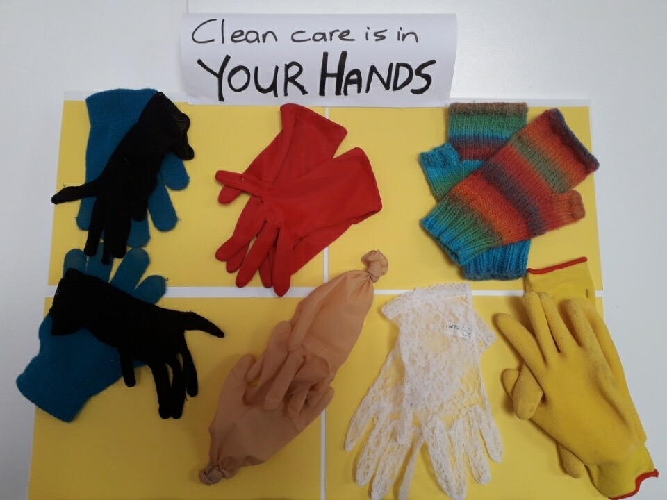 During lockdown we celebrated Global Hand Hygiene Day in novel ways. Obviously hand hygiene was front of mind for everyone, as Covid-19 stormed across the world. But to add emphasis we had Tammy's creative hand biscuits raising awareness on site at North Rd. And at home Sue put her thinking cap on and created this poster (below) with her own glove collection.