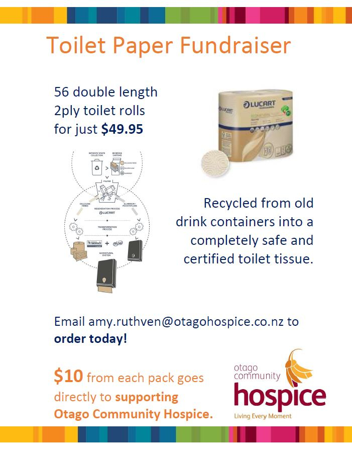 The BNI Portobello group are doing a fundraiser for Hospice. You can get 56 rolls of loo paper for under $50 - and at the same time, raise $10 for Hospice with every lot sold. Please feel free to pass this onto your networks (there is a link to the actual poster below).