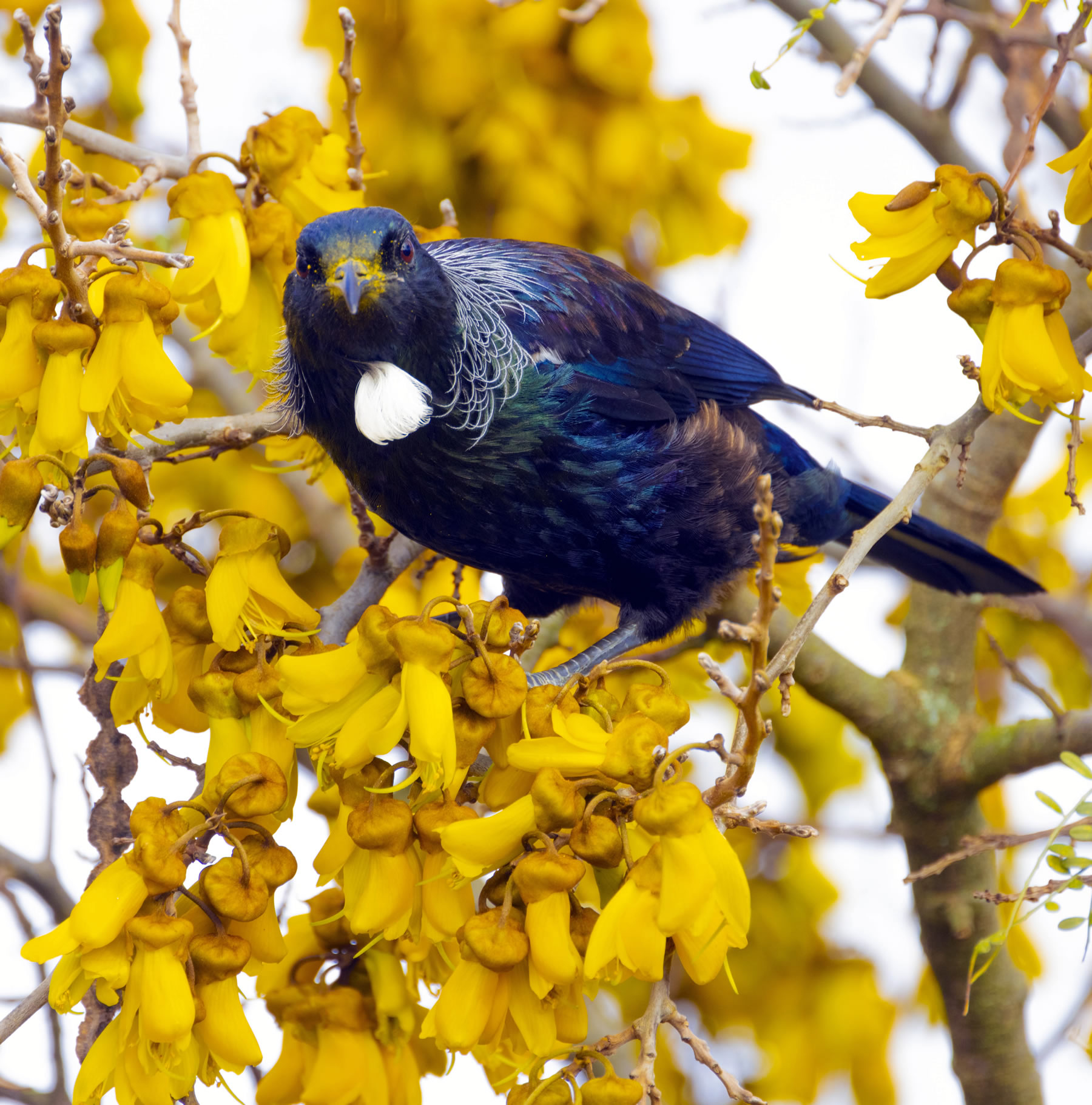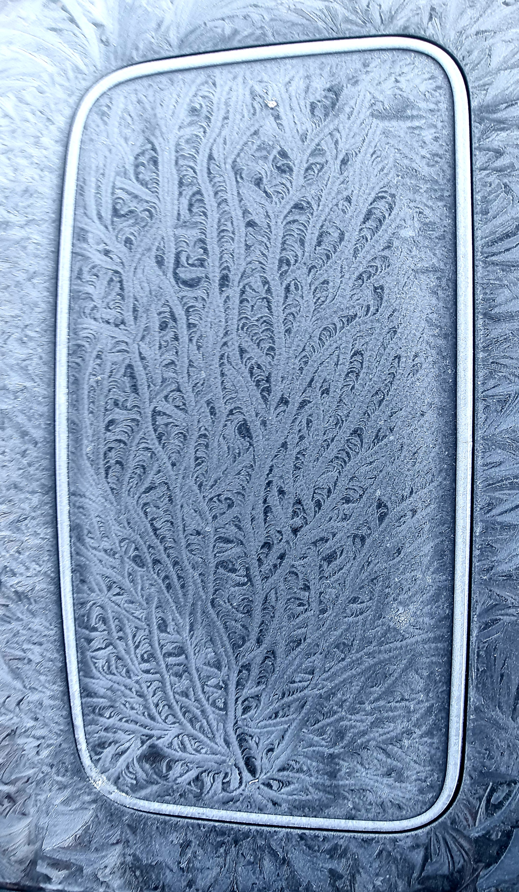 Doug Lilly recently captured this wonderful photo of a tui feasting in his kowhai tree. And when the weather turned icy again, he also captured a couple of beautiful ice formations on the roof of his car one morning - see below.